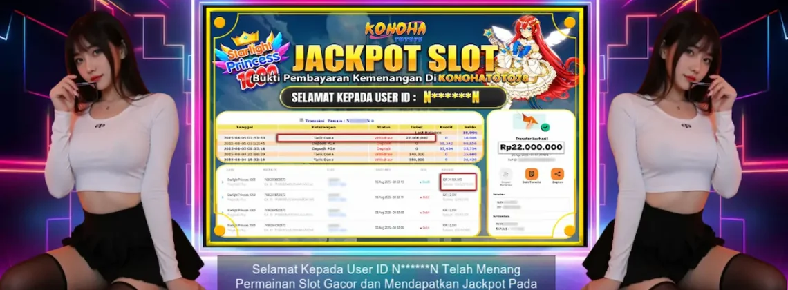 Jakarta, 5 August 2025 — Lo pernah nggak sih ngerasa hoki banget pas main slot? Gue juga awalnya nggak nyangka bisa nyentuh jackpot sampai Rp22 juta dari slot Starlight Princess 1000 di Konohatoto78. Awalnya iseng-iseng, modal cuma 90 ribu. Tapi karena penasaran dan ngulik cara mainnya, akhirnya ketemu trik slot Starlight Princess 1000 yang ternyata bisa bantu peluang menang gue.